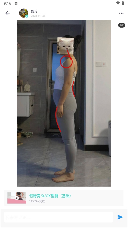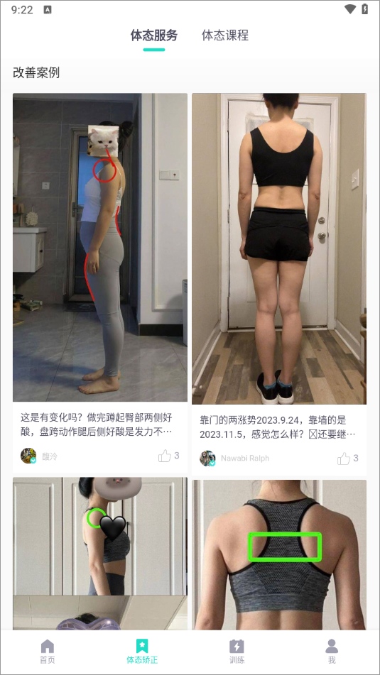1、打开应用后,在体态矫正界面可以查看他人的改善案例。