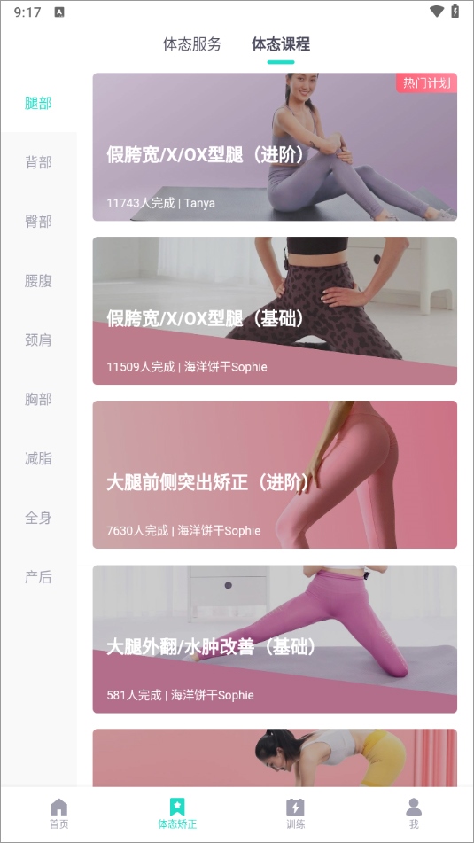 当前的体态课程如下: